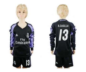Real Madrid #13 K.Casilla Sec Away Long Sleeves Kid Soccer Club Jersey