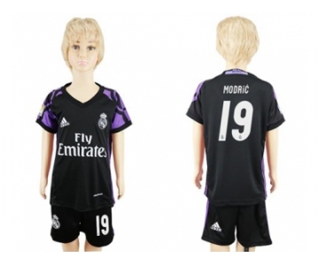 Real Madrid #19 Modric Black Kid Soccer Club Jersey