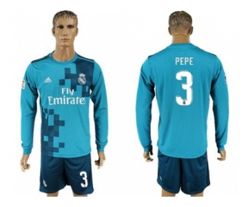 Real Madrid #3 Pepe Sec Away Long Sleeves Soccer Club Jersey