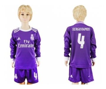 Real Madrid #4 Sergio Ramos Away Long Sleeves Kid Soccer Club Jersey