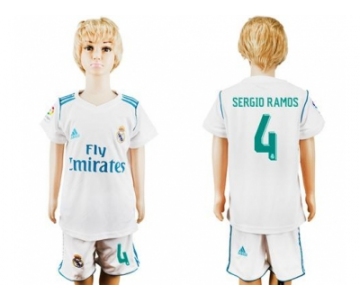 Real Madrid #4 Sergio Ramos White Home Kid Soccer Club Jersey