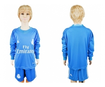 Real Madrid Blank Sky Blue Goalkeeper Long Sleeves Kid Soccer Club Jersey