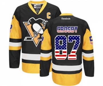 Reebok Pittsburgh Penguins #87 Sidney Crosby Premier Black Gold USA Flag Fashion NHL Jersey