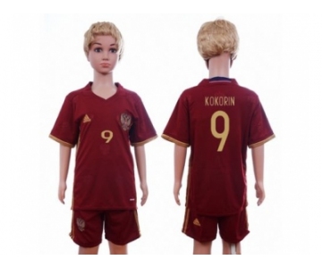 Russia #9 Kokorin Home Kid Soccer Country Jersey