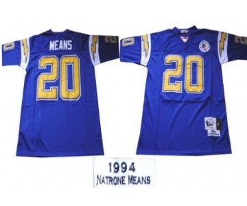 San Diego Chargers #20 Natrone Means Navy Blue Throwback Jersey