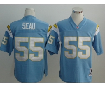 San Diego Chargers #55 Junior Seau Light Blue Throwback Jersey