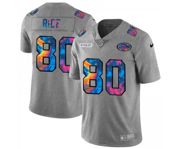 San Francisco 49ers #80 Jerry Rice Men's Nike Multi-Color 2020 NFL Crucial Catch NFL Jersey Greyheather