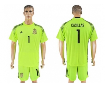 Spain #1 Casillas Shiny Green Goalkeeper Soccer Country Jersey