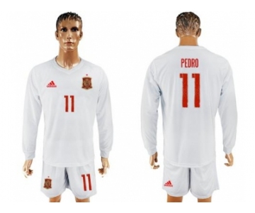 Spain #11 Pedro White Away Long Sleeves Soccer Country Jersey
