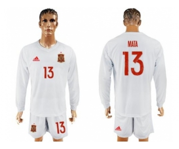 Spain #13 Mata White Away Long Sleeves Soccer Country Jersey
