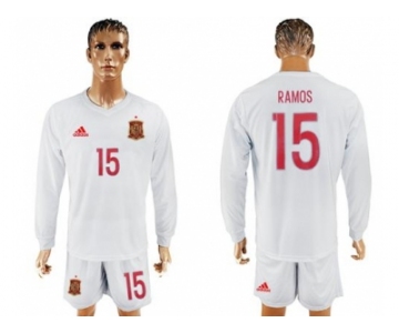 Spain #15 Ramos White Away Long Sleeves Soccer Country Jersey