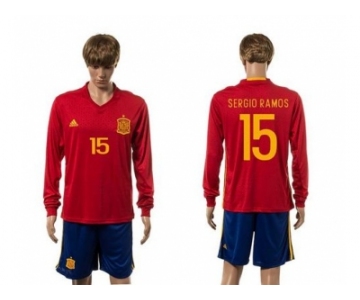 Spain #15 Sergio Ramos Red Home Long Sleeves Soccer Country Jersey