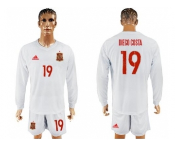 Spain #19 Diego Costa White Away Long Sleeves Soccer Country Jersey