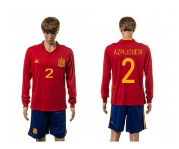 Spain #2 Azpilicueta Red Home Long Sleeves Soccer Country Jersey