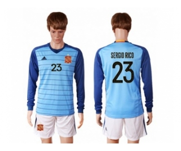 Spain #23 Sergio Rico Blue Goalkeeper Long Sleeves Soccer Country Jersey