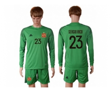 Spain #23 Sergio Rico Green Goalkeeper Long Sleeves Soccer Country Jersey