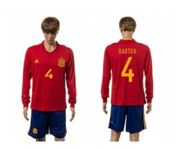 Spain #4 Bartra Red Home Long Sleeves Soccer Country Jersey
