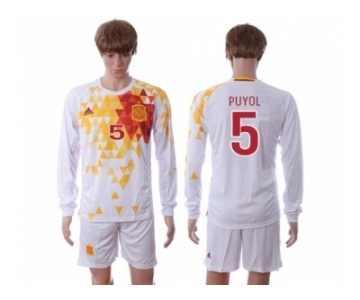 Spain #5 Puyol White Away Long Sleeves Soccer Country Jersey