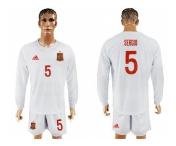 Spain #5 Sergio White Away Long Sleeves Soccer Country Jersey