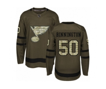 St. Louis Blues #50 Jordan Binnington Authentic Green Salute to Service Hockey Jersey