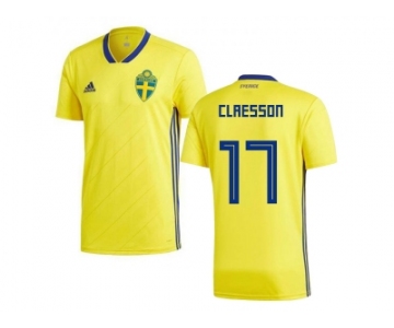 Your Position: Home>Soccer Shirt Kits>2017-2018 National Jerseys>Sweden>Youth>Sweden #17 Claesson Home Kid Soccer Country Jersey