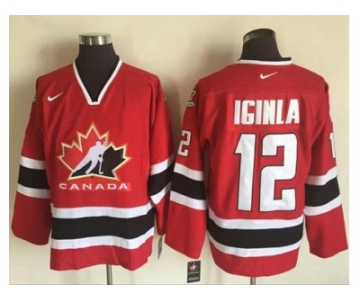 Team CA. #12 Jarome Iginla Red Black 2002 Olympic Nike Throwback Stitched NHL Jersey