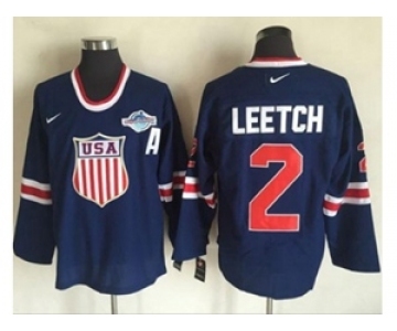 Team USA #2 Brian Leetch Navy Blue 2014 Olympic Nike Throwback Stitched NHL Jersey