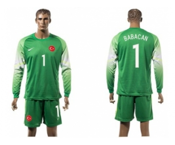 Turkey #1 Babacan Green Goalkeeper Long Sleeves Soccer Country Jersey