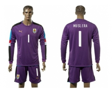 Uruguay #1 Muslera Purple Long Sleeves Soccer Country Jersey
