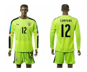 Uruguay #12 Campana Shiny Green Long Sleeves Soccer Country Jersey