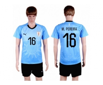 Uruguay #16 M.Pereira Home Soccer Country Jersey