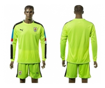 Uruguay Blank Shiny Green Long Sleeves Soccer Country Jersey