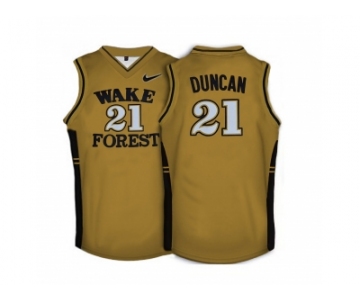 Wake Forest Demon Deacons Tim Duncan #21 College Basketball Throwback Jersey - Gold