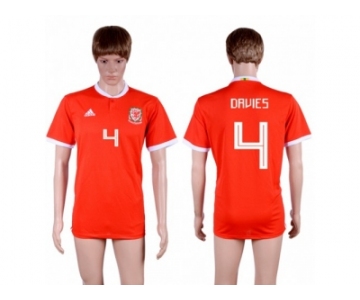 Wales #4 Davies Red Home Soccer Club Jersey