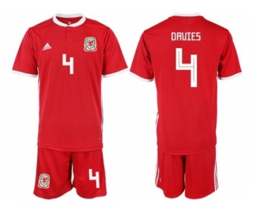 Your Position: Home>Soccer Shirt Kits>2017-2018 National Jerseys>Wales>Men>Wales #4 Davies Red Home Soccer Club Jersey