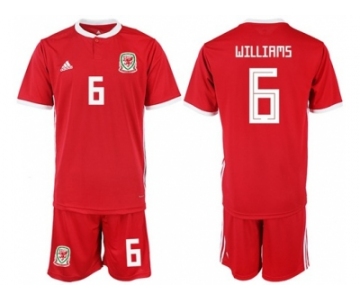 Wales #6 Williams Home Soccer Country Jersey