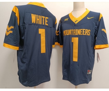West Virginia Mountaineers #1 White Navy F.U.S.E Stitched Football Jersey