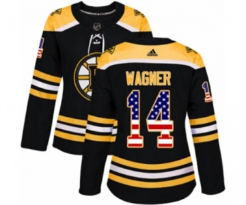 Women Adidas Boston Bruins #14 Chris Wagner Authentic Black USA Flag Fashion NHL Jersey
