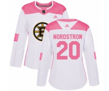 Women Adidas Boston Bruins #20 Joakim Nordstrom Authentic White Pink Fashion NHL Jersey