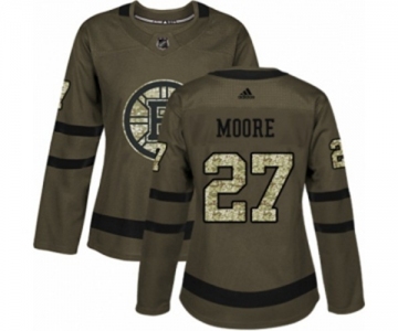 Women Adidas Boston Bruins #27 John Moore Authentic Green Salute to Service NHL Jersey