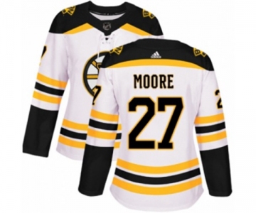 Women Adidas Boston Bruins #27 John Moore Authentic White Away NHL Jersey