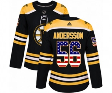 Women Adidas Boston Bruins #56 Axel Andersson Authentic Black USA Flag Fashion NHL Jersey