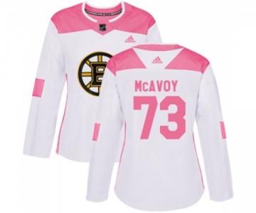 Women Adidas Boston Bruins #73 Charlie McAvoy Authentic White Pink Fashion NHL Jersey