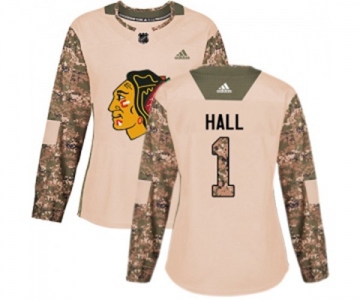 Women Adidas Chicago Blackhawks #1 Glenn Hall Authentic Camo Veterans Day Practice NHL Jersey