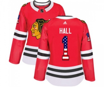 Women Adidas Chicago Blackhawks #1 Glenn Hall Authentic Red USA Flag Fashion NHL Jersey