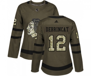 Women Adidas Chicago Blackhawks #12 Alex DeBrincat Authentic Green Salute to Service NHL Jersey