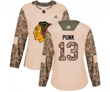 Women Adidas Chicago Blackhawks #13 CM Punk Authentic Camo Veterans Day Practice NHL Jersey