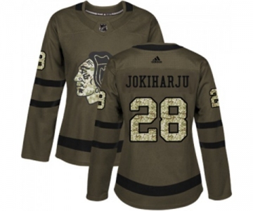 Women Adidas Chicago Blackhawks #28 Henri Jokiharju Authentic Green Salute to Service NHL Jersey