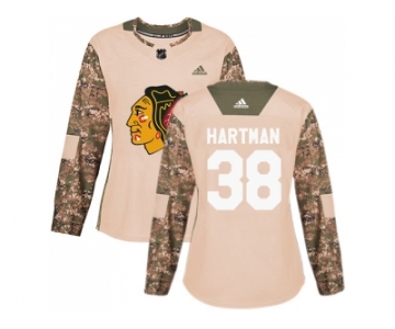 Women Adidas Chicago Blackhawks #38 Ryan Hartman Camo Authentic 2017 Veterans Day Stitched NHL Jersey