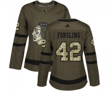 Women Adidas Chicago Blackhawks #42 Gustav Forsling Authentic Green Salute to Service NHL Jersey